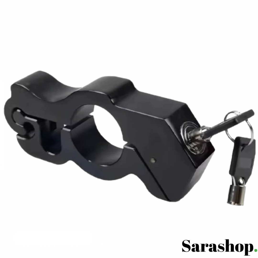 Antivol de guidon universel — moto, scooter, e-bike. Compact, visible, et prêt en 2 secondes. Bloque la poignée et serre le levier de frein avant. La roue est immobilisée et le vol devient tout de suite moins tentant. Parfait pour les arrêts rapides, les livraisons et le stationnement en ville. Corps en alliage d’aluminium solide, fini résistant à la pluie. Doublures intérieures pour protéger la poignée sans la marquer. Fermeture à clé fluide et fiable pour un usage quotidien. Mise en place sans outil. Ouvrir. Enclencher sur poignée + levier. Tourner la clé. C’est verrouillé. Compatibilité large avec la plupart des guidons ronds standards. Convient aux motos, scooters, quads, dirt bikes et vélos électriques. Dans la boîte: Antivol de guidon , Deux clés, Cales de protection. Conseils d’usage. Idéal en complément d’un antivol de disque ou d’une chaîne pour les stationnements prolongés. Toujours vérifier que le levier est bien serré avant de s’éloigner. matériaux = alliage d’aluminium avec doublures de protection.
