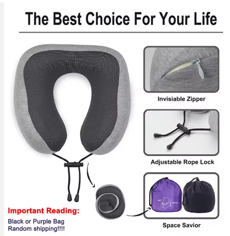 Dormez partout, arrivez reposé. La forme en U enveloppe la tête à 360° et maintient aussi le menton pour éviter les à-coups. La mousse mémoire s’adapte en quelques secondes et reprend sa forme sans s’affaisser. Tissu respirant agréable en climat chaud, sensation douce sur la peau. Cordon d’ajustement pour serrer comme vous aimez, assis droit ou calé contre la vitre. Housse zippée amovible, lavable en machine à 30 °C pour repartir toujours propre. Se roule en petit format et se glisse dans sa pochette compacte à accrocher sur la valise. Parfait pour vols de nuit, car, sotrama, sieste au bureau et révisions. Couleurs selon arrivages : gris clair, noir, ivoire.